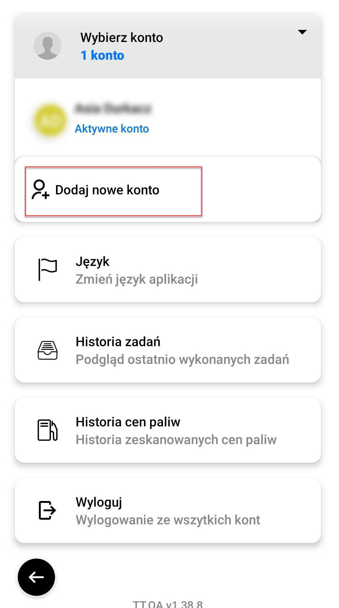 After expanding the tab, you can see a list of users. 'Active account' means a user account you are currently logged in to. If you would like to add a new account, click "Add new account" and then go through the next login steps. All you have to do is log in once to add our account to your list of users.